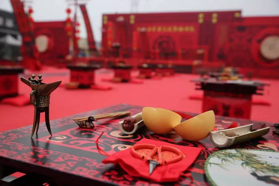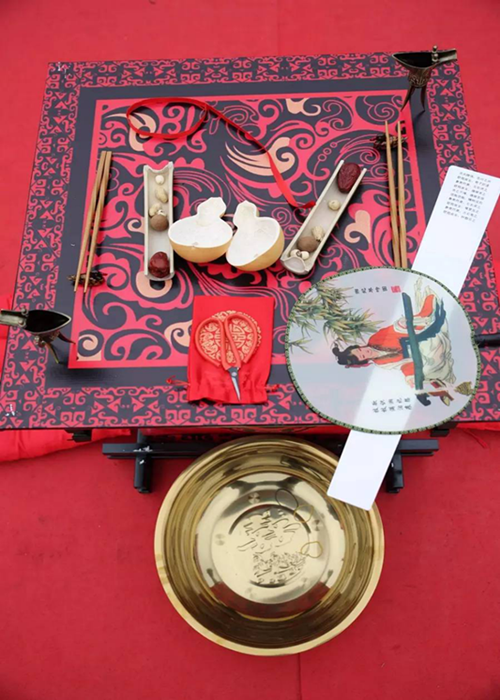 活動(dòng)現(xiàn)場(chǎng):【良緣夙締 佳偶天成】漢式集體婚禮分為《開禮篇》、《主禮篇》、《禮贊篇》三部分。將先后進(jìn)行雅樂起鼓、盛世宣召、新人召進(jìn)、沃盥禮敬、對(duì)席起禮、同牢合巹、交拜成儀、解纓結(jié)發(fā)、執(zhí)手禮成等儀式。