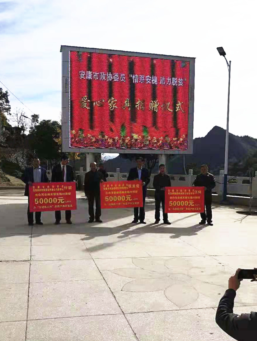 由市政協組織發(fā)起的為貧困戶捐送家具活動10月30日在白河縣城關鎮(zhèn)安槐村舉行,在本次活動中,作為捐助單位,安康市寶業(yè)集團公司副總經理譚照明同志受公司董事長張龍寶同志委托,到達活動現場為受捐貧困戶分發(fā)家具。此次活動得到市政協領導的高度重視,市政協主席陳勇、副主席孟平同志親臨活動現場,走訪慰問貧困戶。得到捐助的貧困戶非常高興,紛紛表示一定不會忘記黨和人民對他們的關懷和厚愛。