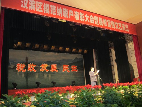 4月23日,張龍寶董事長代表寶業(yè)(集團(tuán))公司參加“漢濱區(qū)模范納稅戶表彰大會暨稅收宣傳文藝演出。