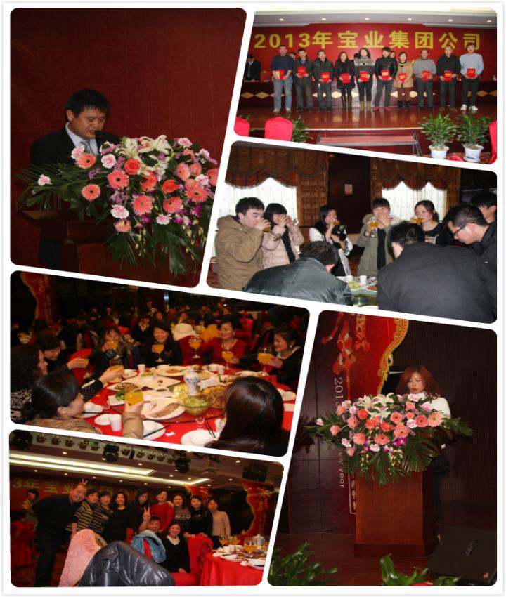2012年2月6日下午,寶業(yè)(集團(tuán))公司2013年度新春團(tuán)拜會(huì)于明江酒店隆重舉行。整個(gè)年會(huì)現(xiàn)場(chǎng)氣氛熱烈、活躍、和諧、團(tuán)結(jié)。年會(huì)分為二個(gè)部分,下午首先舉行“寶業(yè)(集團(tuán))公司2012總結(jié)表彰大會(huì)”,接下來(lái)是公司全員大聯(lián)歡、年會(huì)聚餐。